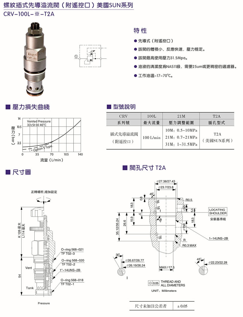 CRV-100L-10M-T2A,CRV-100L-21M-T2A,CRV-100L-31M-T2A,螺紋插式先導(dǎo)溢流閥