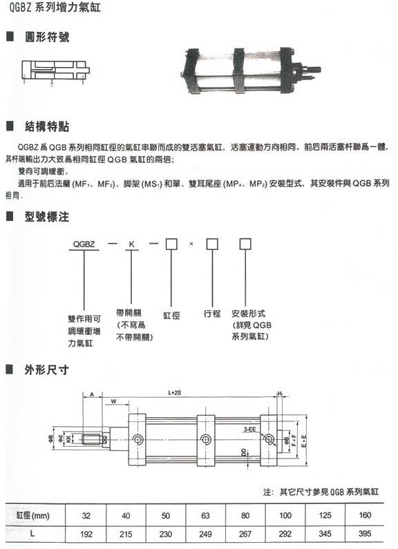 QGBZ-K-32,QGBZ-K-40,QGBZ-K-50,QGBZ-K-63,QGBZ-K-80,增力氣缸