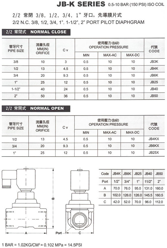 JB4KX-V,JB4KX-P,JB6KX-P,JB25X-V,JB6KX-R,JB25X-R,電磁閥