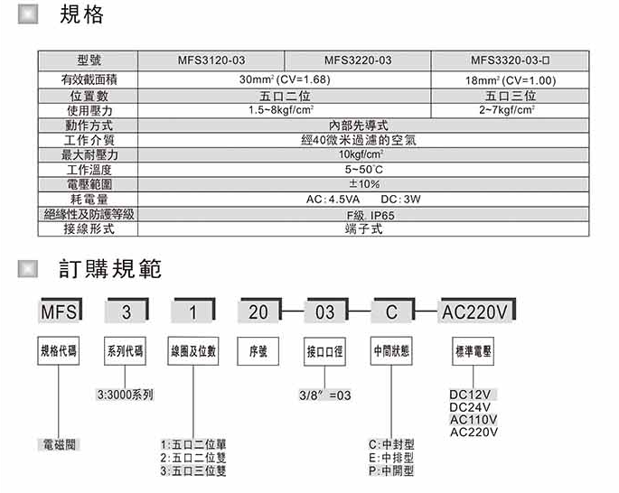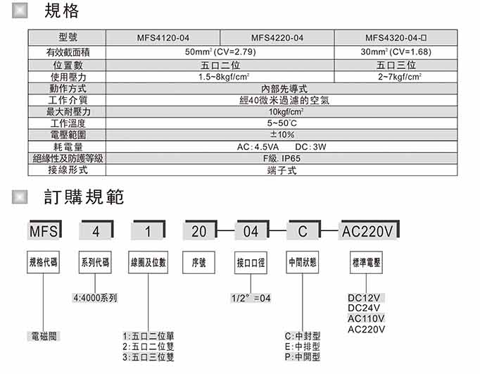 電磁閥 MFS1120-01C-DC12V,MFS1120-01C-DC24V,MFS1120-01C-AC110V,MFS1120-01C-AC220V