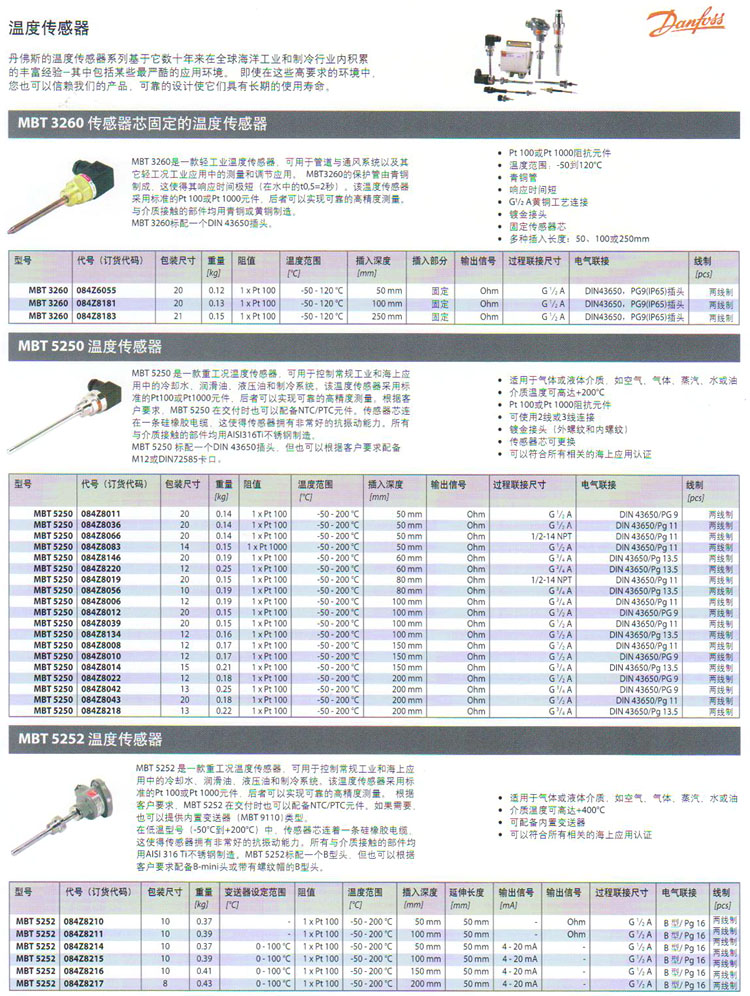 MBT3260,MBT5250,MBT5252,MBT3560,MBT3270,溫度傳感器