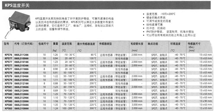詳細(xì)信息 KPS76,KPS77,KPS79,KPS81,KPS80,KPS83,溫度開(kāi)關(guān)