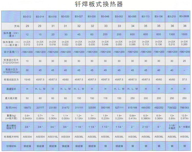 B3-012,B3-014,B3-020,B3-027,B3-030,B3-048,B3-052,B3-095,B3-113,板式換熱器