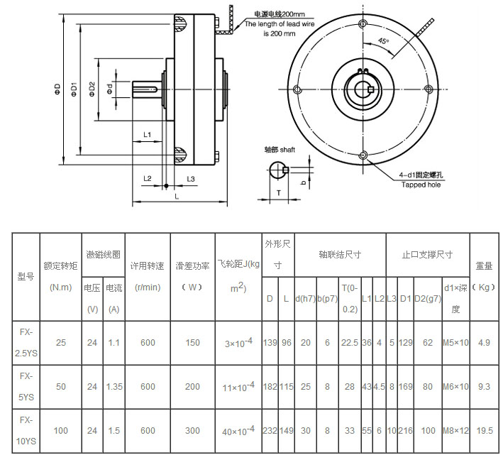 FX-2.5YS,FX-5YS,FX-10YS,薄型磁粉制動(dòng)器