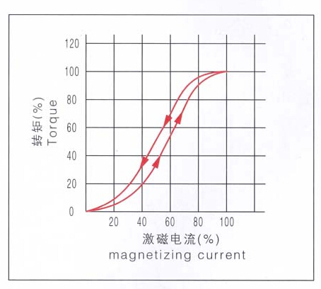 1.勵(lì)磁電流與輸出轉(zhuǎn)矩基本成比例關(guān)系,轉(zhuǎn)矩在額定值的5-100%范圍內(nèi)可控制,小電流可以控制輸出較大的轉(zhuǎn)矩。