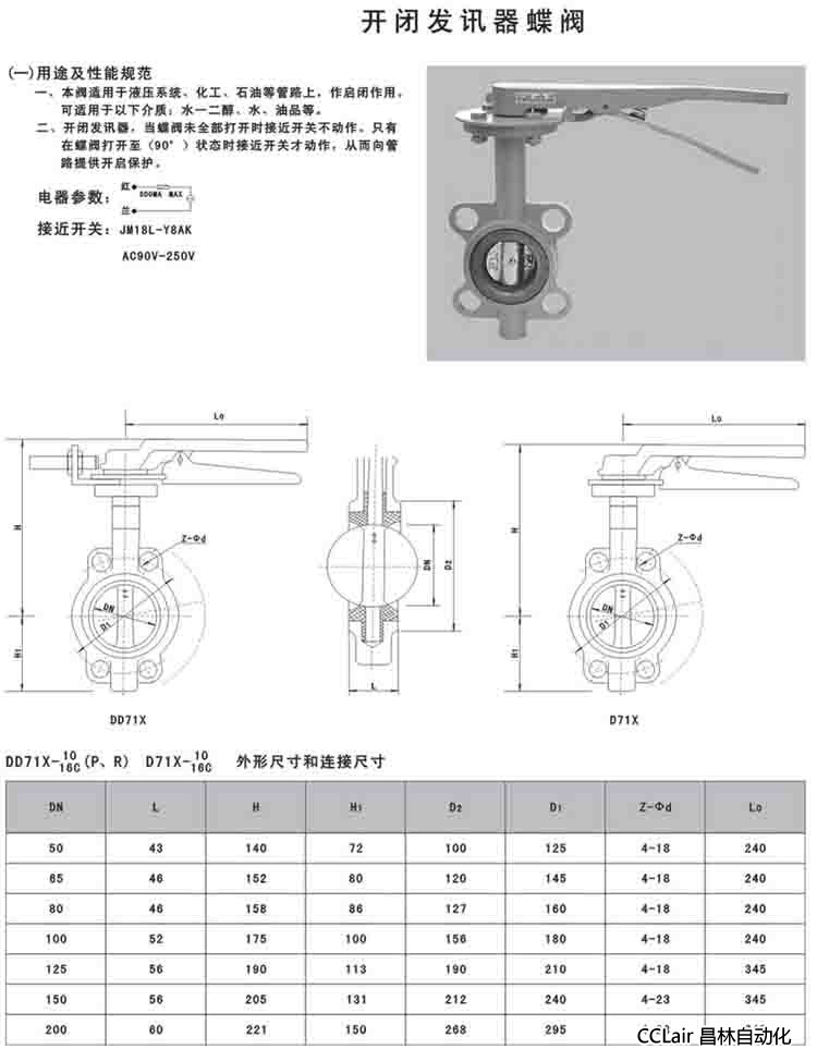 詳細(xì)信息 DD71X-10C,DD71X-10P,DD71X-10R,DD71X-16C,DD71X-16P,DD71X-16R,開閉發(fā)訊器蝶閥