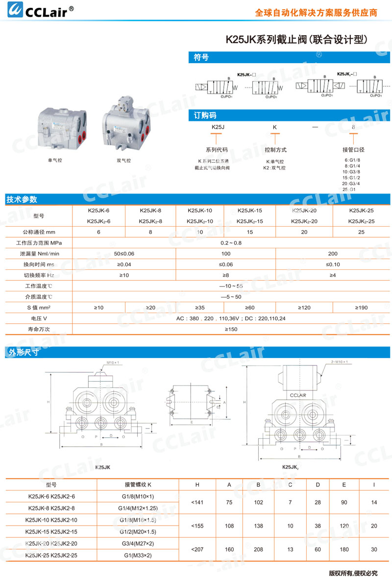 K25JK-6,K25JK-8,K25JK-10,K25JK-15,K25JK-20,K25JK-25,K25JK2-8,K25JK2-10,二位五通截止式氣動換向閥