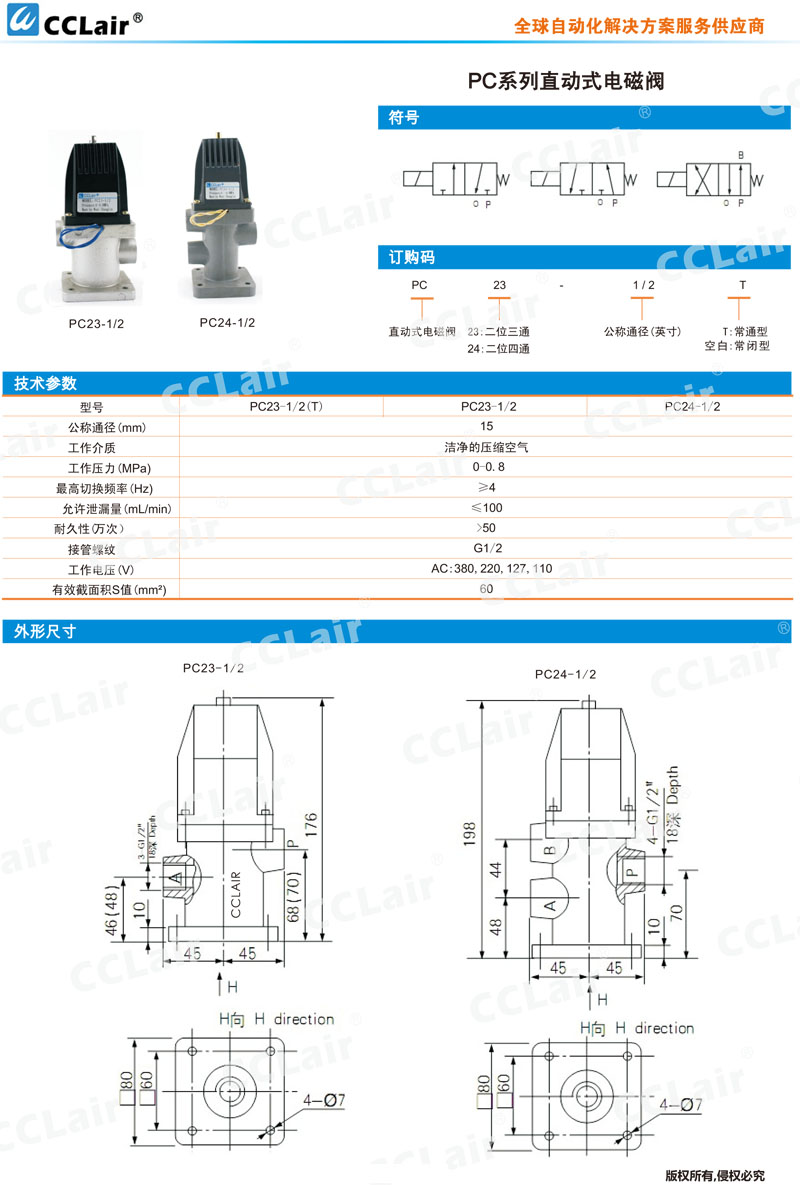 PC23-1/2,PC24-1/2,PC23-1/2T,PC24-1/2T,直動式電磁閥