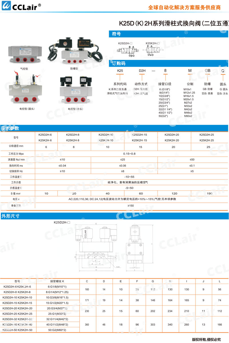 K25D2H-6,K25D2H-8,K25D2H-10,K25D2H-25,K25K2H-15,K25K2H-20,K25K2H-25,二位五通滑柱式氣控?fù)Q向閥