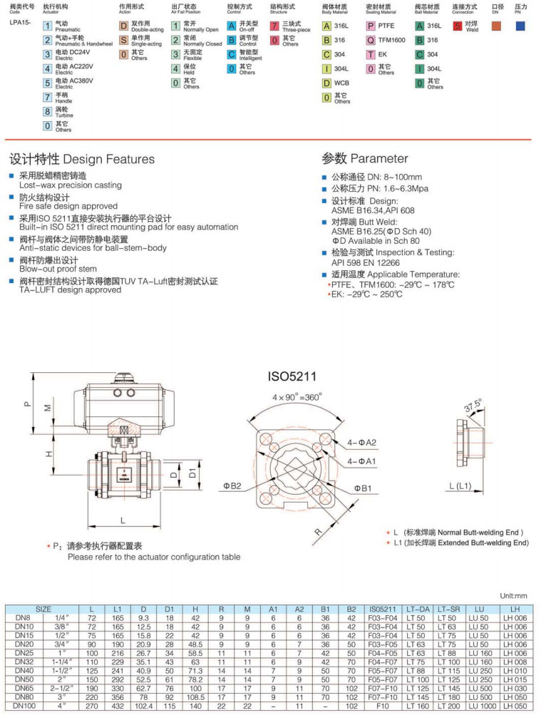 LPA15-2,LPA15-3,LPA15-4,LPA15-5,LPA15-7,LPA15-8,LPA15-1D3A4DPC2-80-150LB,對(duì)焊球閥