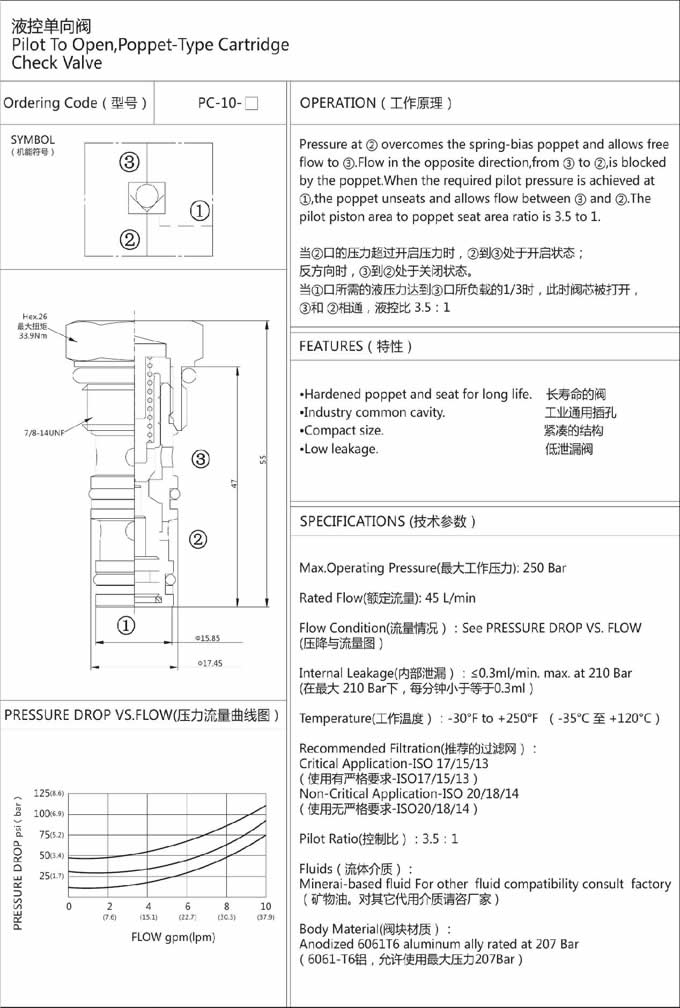 詳細信息 PC-10-17,PC-10-34,PC-10-62,液控單向閥