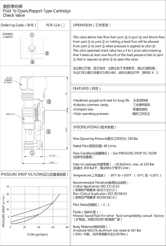 詳細(xì)信息 PCR-11A-20,PCR-11A-50,液控單向閥