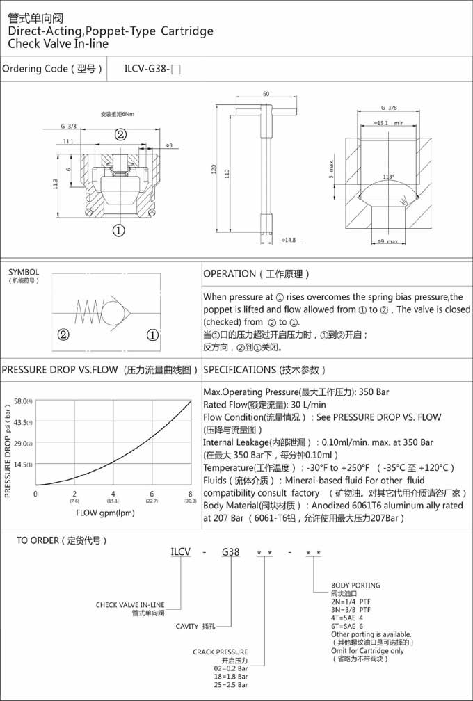 詳細(xì)信息 ILCV-G38-02,ILCV-G38-18,ILCV-G38-25,管式單向閥