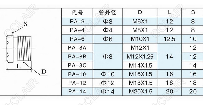 詳細信息 PA-3,PA-4,PA-6,PA-8A,PA-8B,PA-8C,PA-10,PA-12,PA-14,油管接頭01