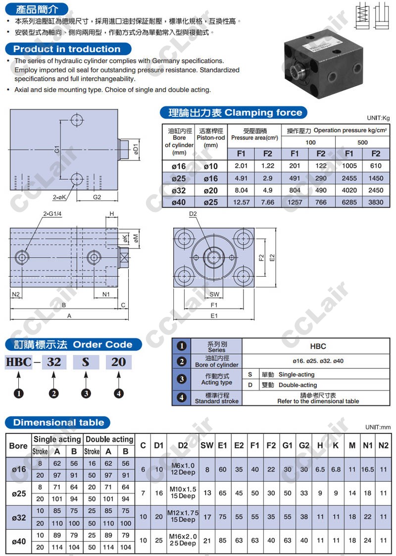 臺灣聯(lián)鎰(amac),HBC-16S8,HBC-25S8,HBC-32S8,HBC-40D16,HBC-32S20,HBC-40S20,HBC-40S20,HBC-40D50,塊型油壓缸