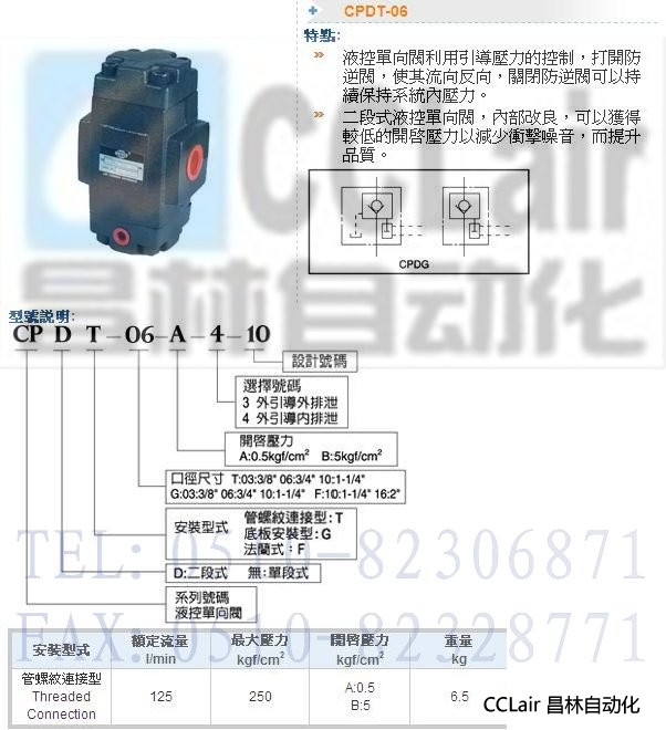 詳細(xì)信息 CPDT-06-A-4-10,CPDT-06-A-3-10,液控單向閥