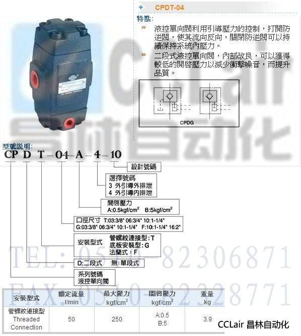 詳細(xì)信息 CPDT-04-A-4-10,CPDT-04-A-3-10,液控單向閥