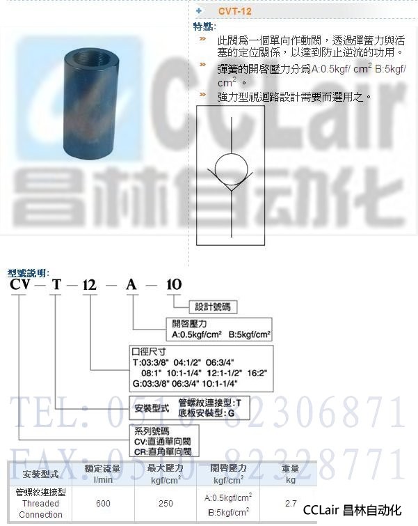 詳細(xì)信息 CVT-12-B-10,CVT-12-B-10,單向閥