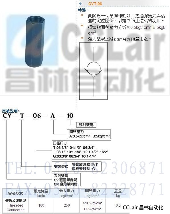 詳細(xì)信息 CVT-06-A-10,CVT-06-B-10,單向閥