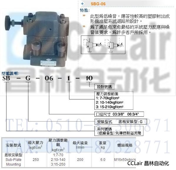 詳細信息 SBG-06-1-10,SBG-06-2-10,SBG-06-3-10,溢流閥