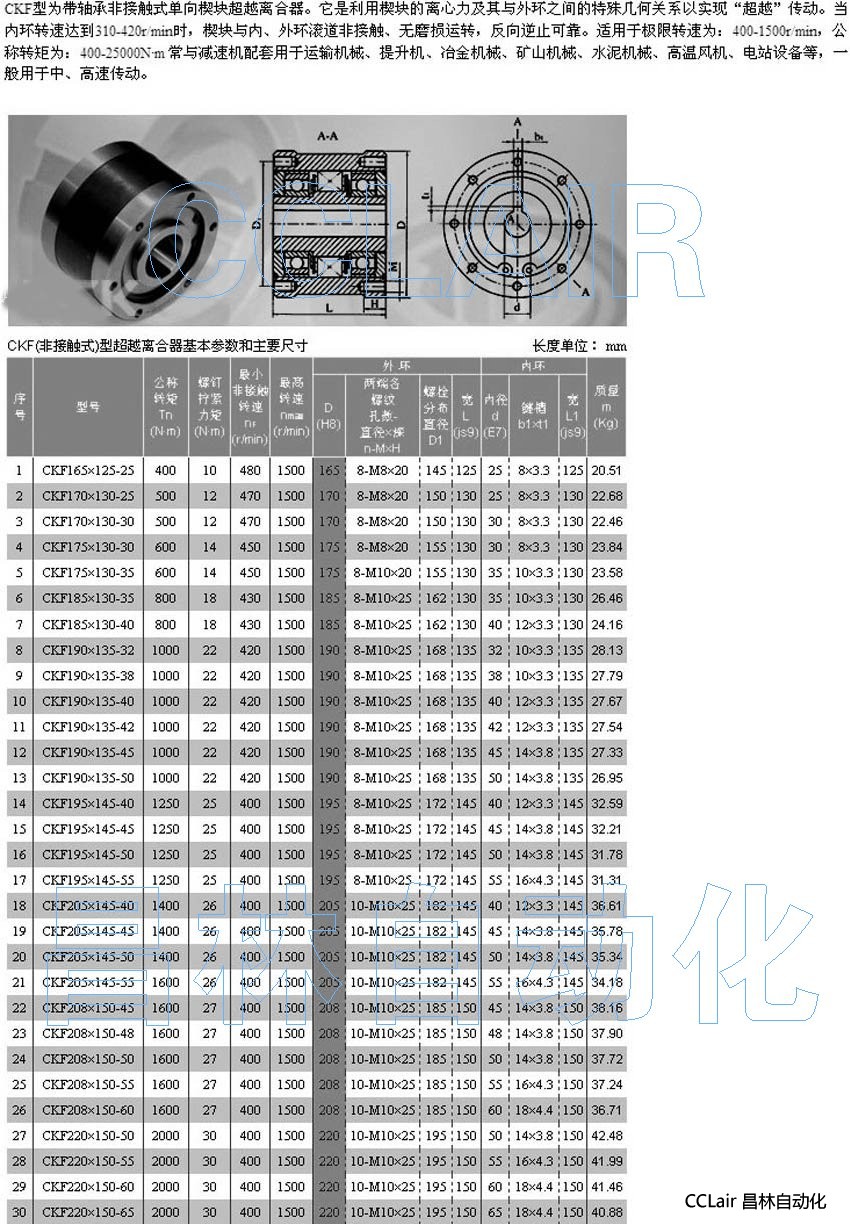 CKF165*125-25,CKF170*130-25,CKF170*130-30,CKF175*130-30,CKF175*130-35,超越離合器