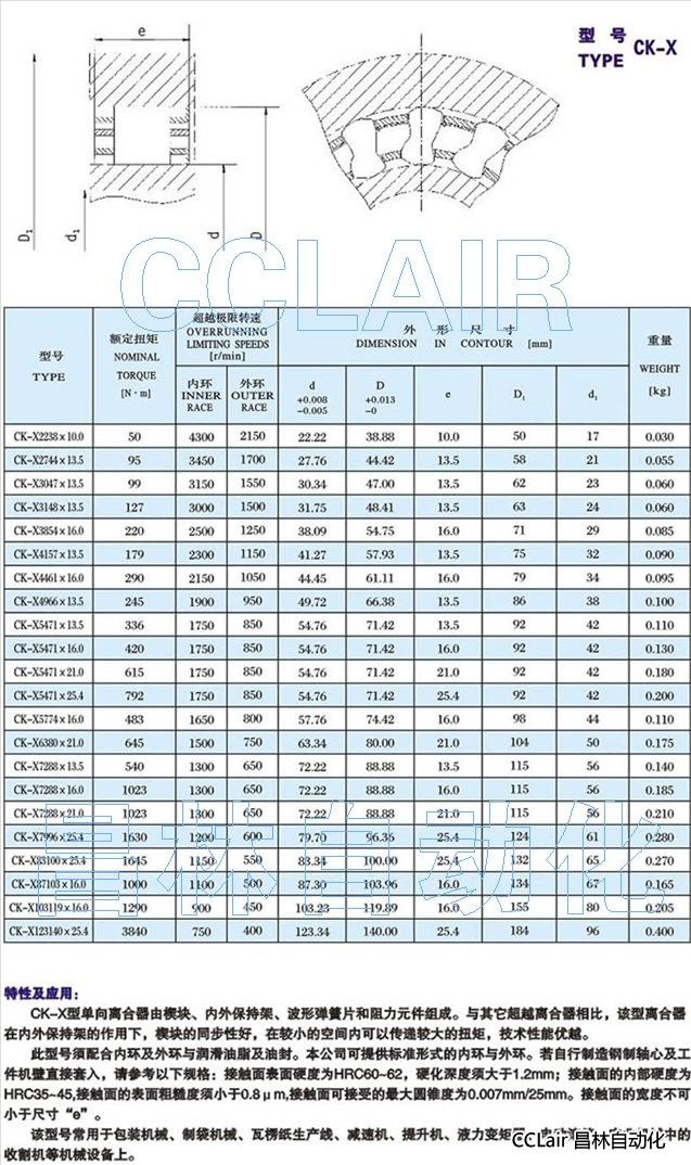 CK-X2238*10.0,CK-X2744*13.5,CK-X3047*13.5,CK-X3148*13.5,CK-X3854*16.0,單向離合器