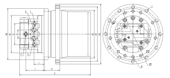 本產(chǎn)品為馬達(dá)與減速機(jī)一體的行走裝置。由集成于減速機(jī)內(nèi)部的雙排量軸向柱塞馬達(dá)、行走減速器組成。馬達(dá)內(nèi)置安全閥、防反轉(zhuǎn)閥、停車制動(dòng)裝置及高低二檔轉(zhuǎn)換裝置,它的特點(diǎn)是:傳動(dòng)比范圍大、結(jié)構(gòu)緊湊、工作效率高、可靠性強(qiáng)、體積小、運(yùn)動(dòng)平穩(wěn)、噪音低等,同時(shí)具有多級(jí)安全保護(hù)、使用壽命長(zhǎng)等優(yōu)點(diǎn)。適用于液壓履帶驅(qū)動(dòng)行走裝置。