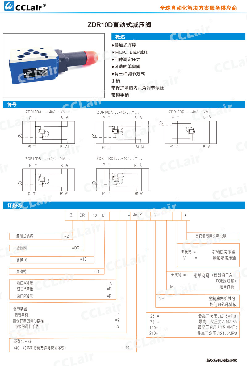 ZDR10DP3-40/25Y,ZDR10DP3-40/75Y,ZDR10DP3-40/150Y,ZDR10DP3-40/210Y,ZDR10DB3-40/150Y,
