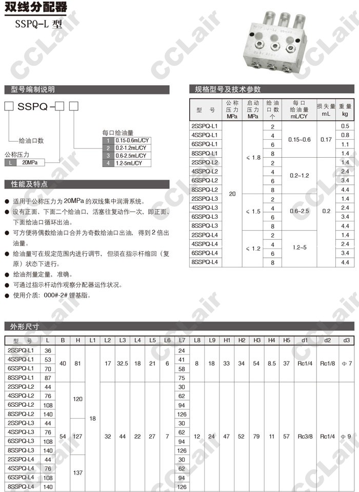 詳細信息 2SSPQ,4SSPQ,6SSPQ,8SSPQ,2SSPQ-L1,6SSPQ-L2,4SSPQ-L3,8SSPQ-L4,雙線分配器
