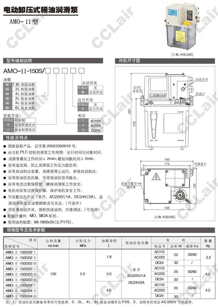 AMO-II-150S,AMO-II-150S/02I,AMO-II-150S/02II,AMO-II-150S/02III,電動(dòng)卸壓式稀油潤(rùn)滑泵