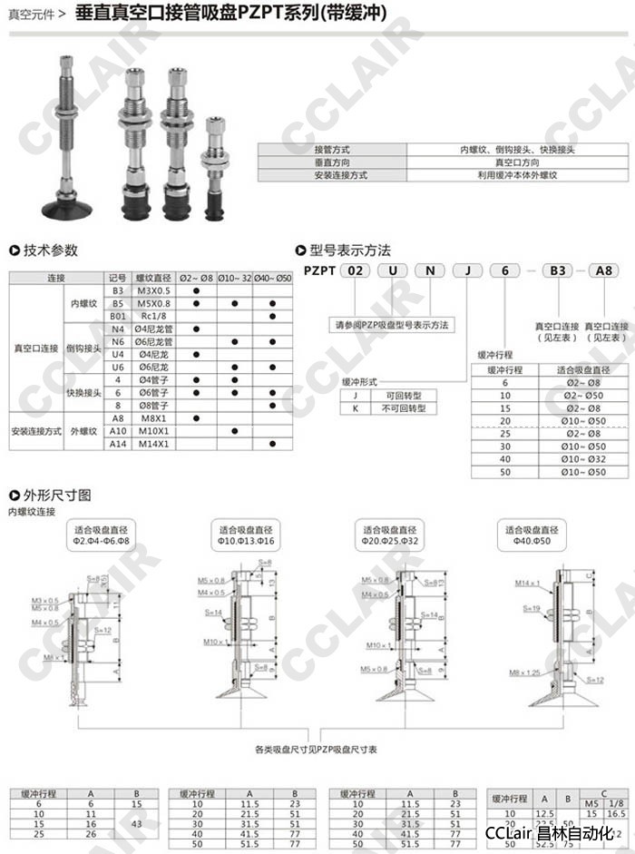 PZPT04BK6,PZPT06BK6,PZPT02BK6,PZPT10BK6,PZPT32BJ6,PZPT50BK6垂直真空口接管吸盤