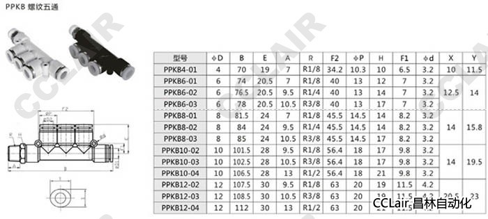 PPKB4,PPKB6,PPKB8,PPKB10,PPKB12,螺紋五通接頭