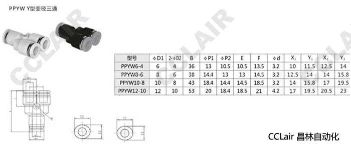 PPYW6-4,PPYW8-6,PPYW10-8,PPYW12-10,Y型變徑三通接頭
