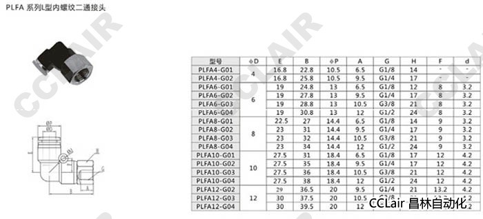 詳細(xì)信息 PLFA4,PLFA6,PLFA8,PLFA10,PLFA12,L型內(nèi)螺紋二通接頭