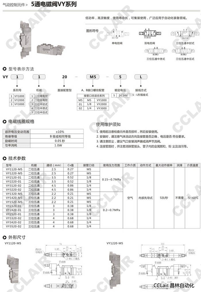 VY3520-M5,VY1120-01,VY2120-01,VY3120-01,VY1220-01,VY2220-01,5通電磁閥