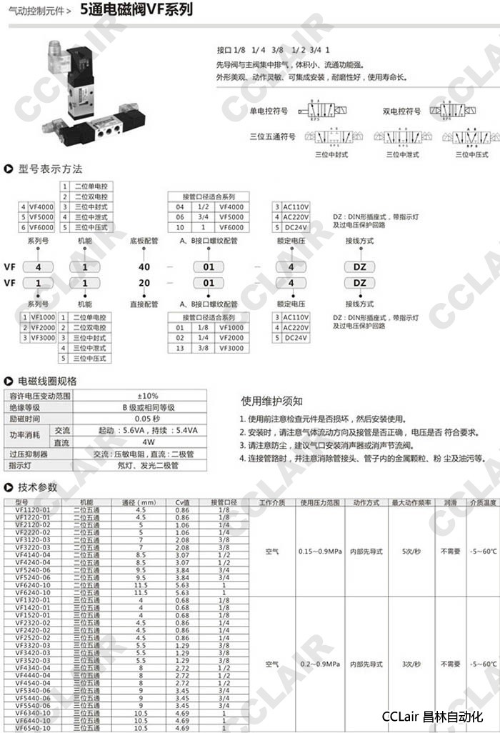 詳細信息 VF3120-03,VF3220-03,VF3320-03,VF3420-03,VF3520-03,5通電磁閥