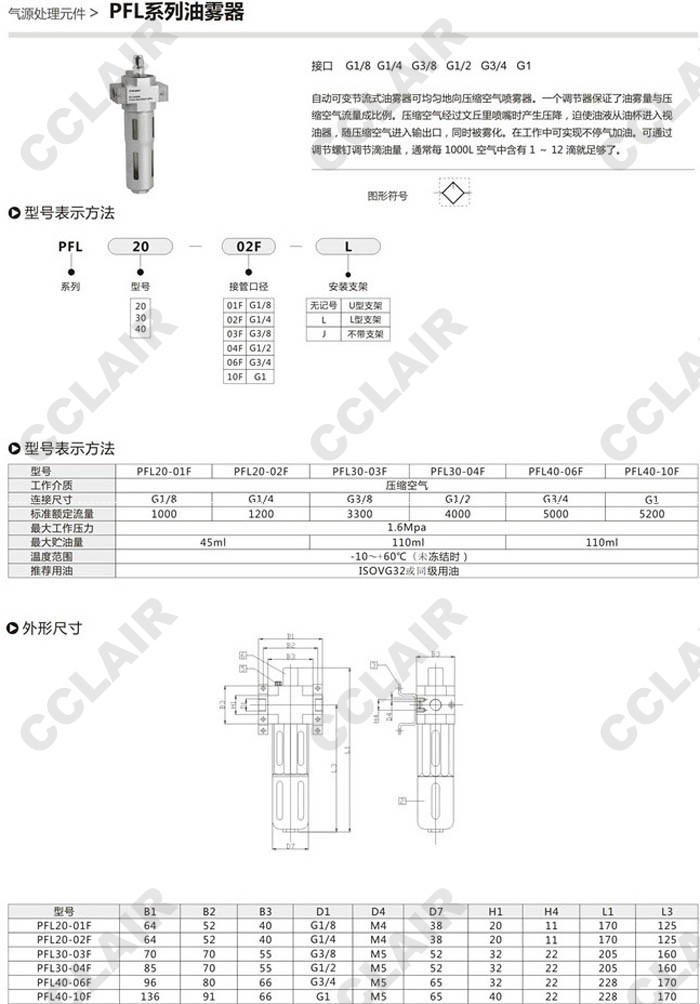 詳細信息 PFL30-01F,PFL30-02F,PFL30-03F,PFL30-04F,PFL30-06F,PFL30-10F,氣動油霧器