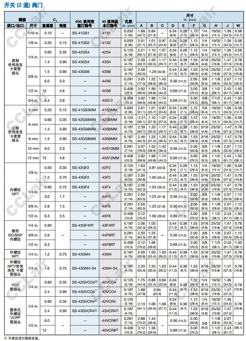 世偉洛克(swagelok),SS-41GS1,SS-42GS4,SS-41GS3MM,SS-43GS4,SS-42GF2,SS-43GF4RT,SS-43GM4,SS-42GVCO4,二通球閥