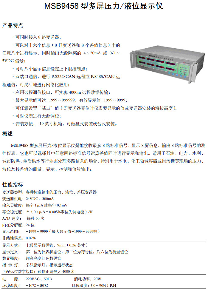 詳細信息 MSB9458-R1,MSB9458-R2,MSB9458-R3,MSB9458-R4,MSB9458-R5,多屏壓力液位顯示儀