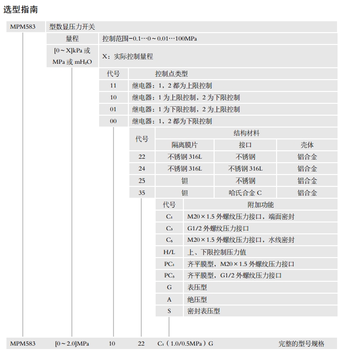 詳細(xì)信息 MPM583-0.1-11,MPM583-0-10,MPM583-0.01-00,MPM583-100-11,數(shù)顯壓力開(kāi)關(guān)