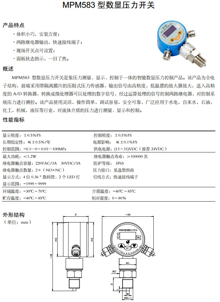您當(dāng)前的位置:首頁(yè) » 產(chǎn)品&解決方案 » MPM583-0.1-11,MPM583-0-10,MPM583-0.01-00,MPM583-100-11,數(shù)顯壓力開(kāi)關(guān)