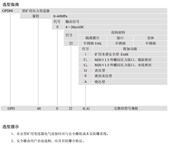 詳細(xì)信息 GPD60E-22,礦用壓力變送器