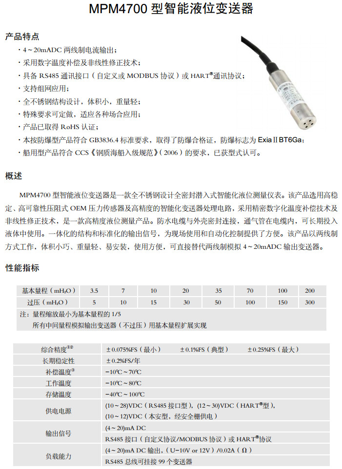 MPM4700-3.5,MPM4700-7,MPM4700-10,MPM4700-20,MPM4700-35,MPM4700-70,智能液位變送器