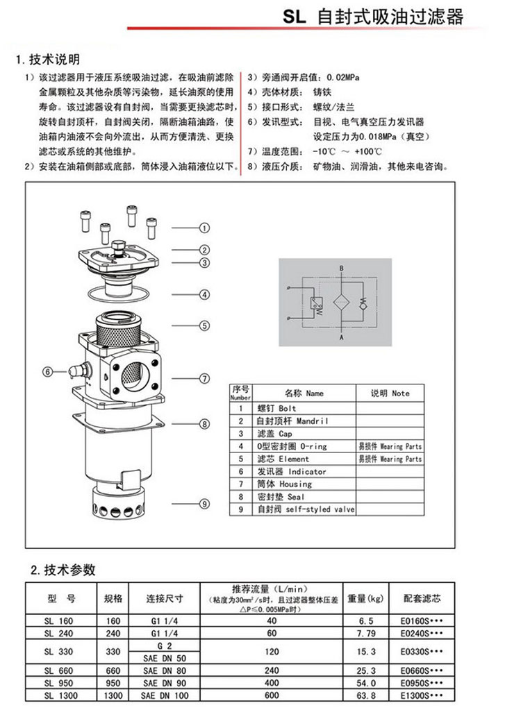 E0160S,E0240S,E0330S,E0660S,E0950S,E1300S,E0160S010PP,E0240S180WP,自封式吸油過濾器濾芯 |
