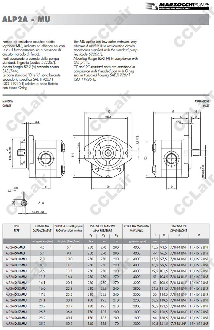 ALP2A-D-40-MU,ALP2A-D-50-MU,MARZOCCHI ALP2A-D-16-MU,