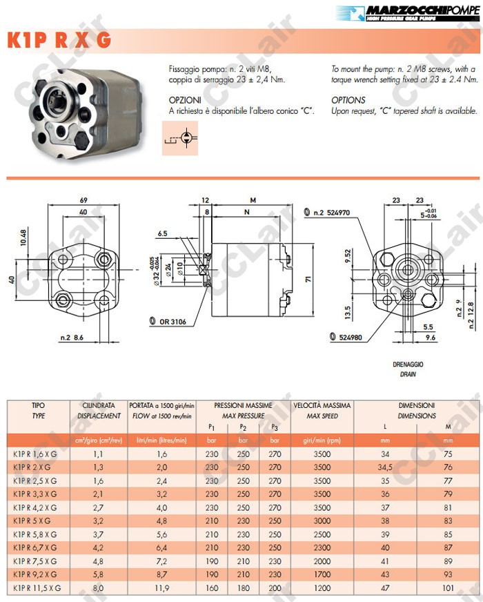 K1PR1.6,K1PR1.6XG,K1PR2XG,K1PR2.5XG,K1PR3.3XG,K1PR4.2XG,K1PR5XG,K1PR5.8XG,MARZOCCHI齒輪油泵