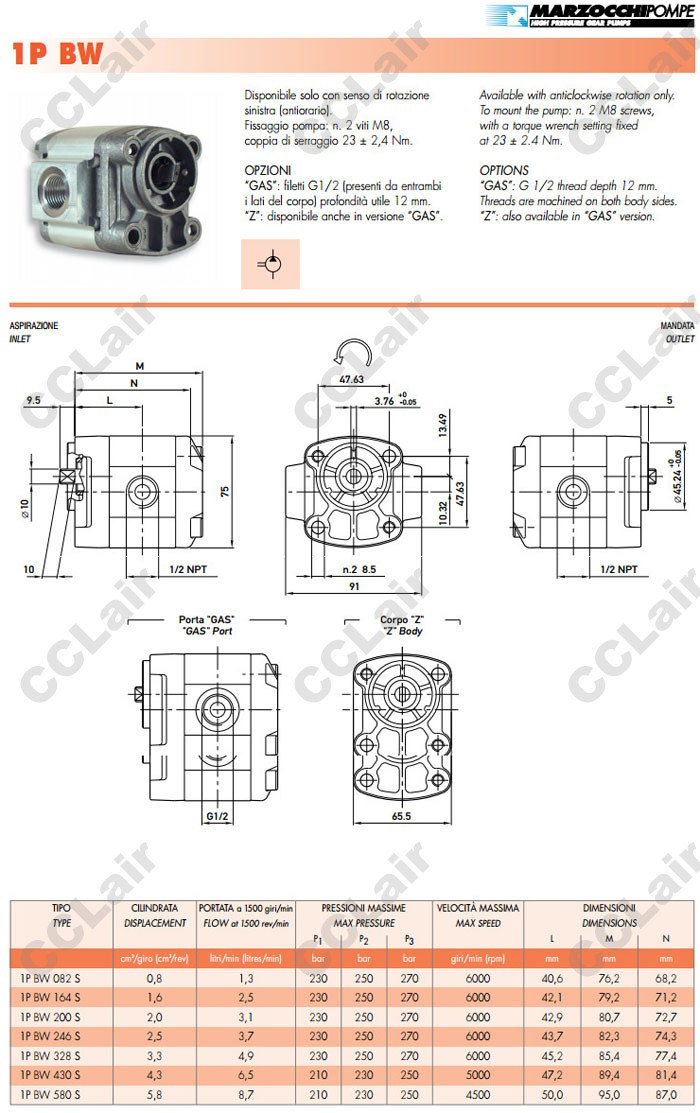 1PBW082S,1PBW164S,1PBW200S,1PBW246S,1PBW328S,1PBW430S,1PBW580S,MARZOCCHI齒輪油泵