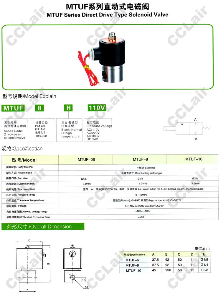 詳細(xì)信息 MTUF-06,MTUF-08,MTUF-10,直動式電磁閥,無錫昌林