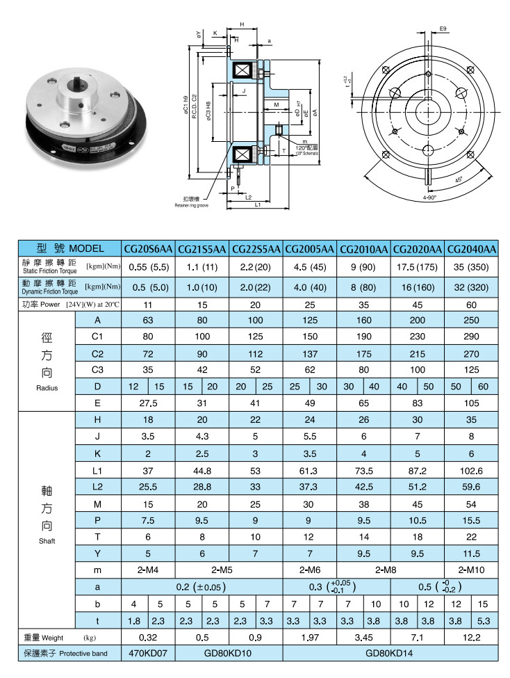 CG20S6AA,CG21S5AA,CG22S5AA,CG2005AA,CG2010AA,CG2020AA,CG2040AA干式單片電磁剎車器