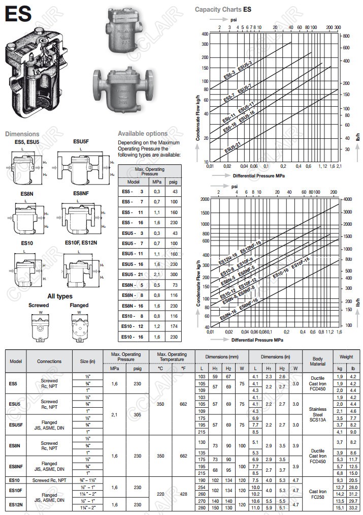 ES5,ESU5,ESU5F,ES8N,ES8NF,ES10,ES10F,ES12N,miyawaki倒吊桶式蒸汽疏水閥